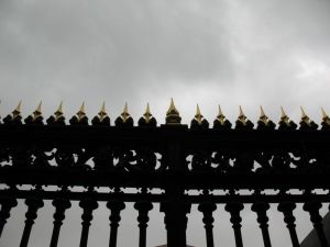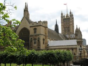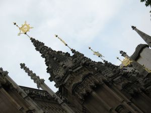We liked the gilt flags on the building across the street–which must be the backside of Westminster Abbey.