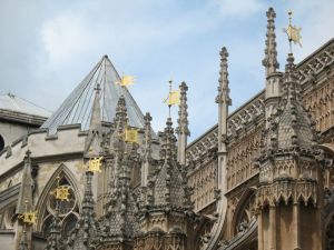 We liked the gilt flags on the building across the street–which must be the backside of Westminster Abbey.