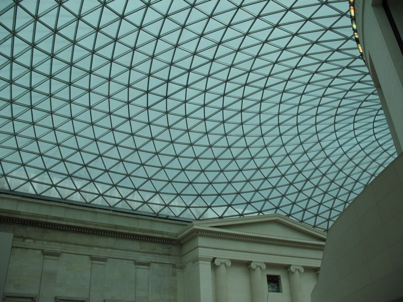 The museum courtyard has an undulating glass ceiling, with the reading room in the middle. This view reminded me of a pueblo-styled building.