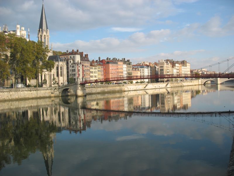 The sky is filled with clouds, the water like a looking glass, so I take some photos to remember Lyon by.