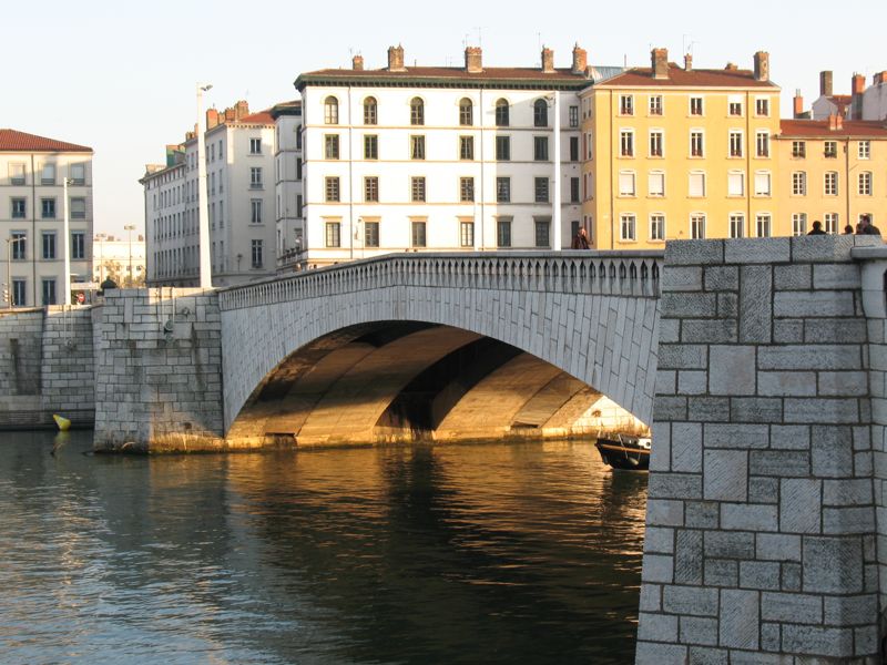 Pedestrian bridge leading from the left bank, where the marche was being held, to the right bank, and the old town of Lyon.