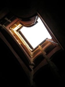 I pushed open the heavy wooden door in the corner of the Lawyer’s Court and saw this perfectly lit scene–I was a little shaky though, so it’s not completely crisp. Below is the underside of the next floor’s staircase–all in stone.