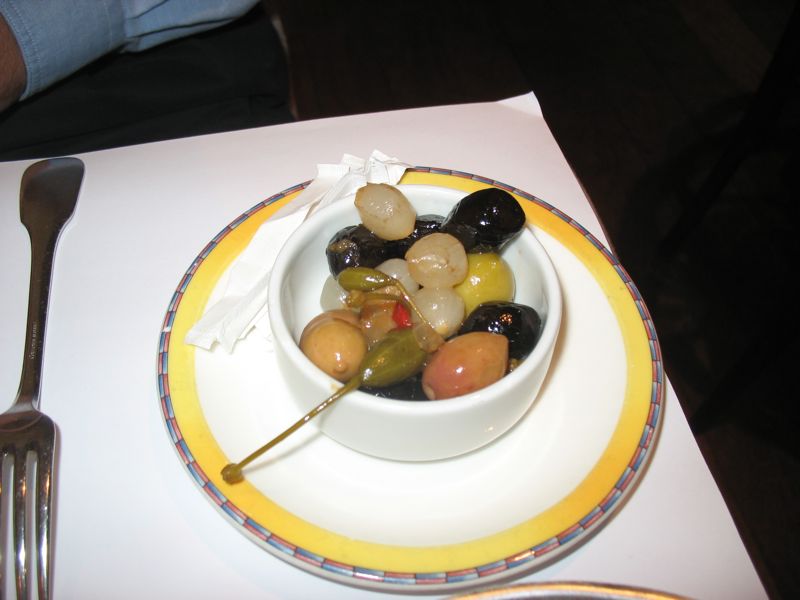 In each of the Bocuse brasseries, they bring out this little dish of marinated goodies. We couldn’t figure out the interesting one with the stem. They kept telling us it was a caper, but it was like none we’d ever seen. The best info I could gather is that it’s a “caperberry,” or a semi-mature flower bud.