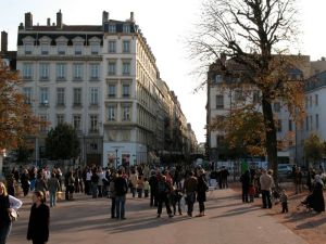 Our street, today. In Place Bellecour they were having an event of some kind, with several large white tents set up. Dave took these shots.