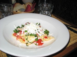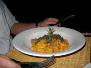 He had a pasta dish with Tuscan sausage and black truffle. Love the perky little rosemary twig for garnish.
