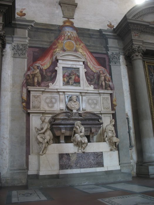 They let you take photos in here–just no flash, which I think is a more reasonable approach. This is Michelangelo’s tomb. The common belief is that he would have hated it, tricked up as it is. He was more about simplicity, I think.I wish now that I would have taken photos of Galileo’s tomb, since today is the 400th anniversay of the invention of the telescope. (Thanks, Google.)