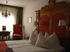 We took the train into the city center, then transferred to the U-Bahn, or their mass transit system, which is very efficient. Then to the Hotel Printzregent, where we are staying. Love the pillows. We think this is the same room we stayed in last time.
