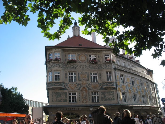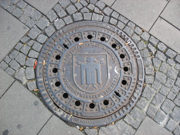 This monk, with his outstretched arms is found on the tops of buildings, and of course, on the manhole covers. He’s one of the motifs we see repeated everywhere, as Munich means “of monks.” Read the linked article for more info.