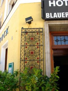 I write my postcards to family back home, and then remember that I need to buy stamps. Add that to the list of Tourist Things To Do today. One thing for sure was that I missed the tram rides. Our side of Munich relies heavily on the trams and that’s how I had traveled before when we were here. One item was to try and find that gate that had inspired the center medallion of a quilt I made after returning from Germany last time, but it was always right there, at the end of the block of a tram stop and I thought I might never find my way.