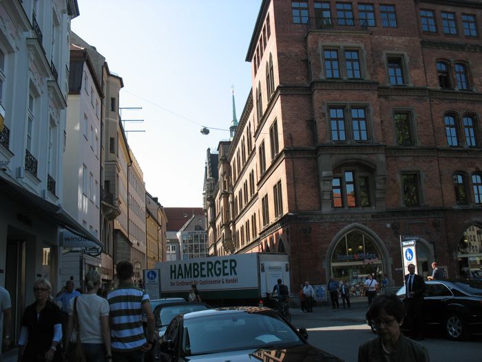 Down from that was this umbrella shop. My big impulse buy was an umbrella in sunny blue with scenes of Munich all around. I mentioned to the shop owner how nice it was to have such sun. Not for me, he said. I like rain.