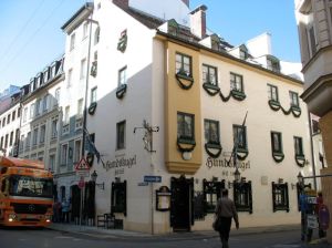 If you happen to be in Marienplatz at the right time you are in for an amazing treat. The square will fill with the sound of the carillon in the Glockenspiel. It plays twice or three times a day, at 10:30am, noon, and 5pm. As the folk music chimes ring out, doors open and brightly hued mechanical figures of enameled copper emerge and begin to dance. The Glockenspiel has two separate acts which celebrate two events from Munich’s past. The colorful dancers are doing the Schaefflertanz or Dance of the Coppers which commemorates the end of the plague in 1517. The other “act” is a miniature tournament of knights jousting. They are reenacting a famous tournament that was held for the royal weddings that took place in Marienplatz in 1568.