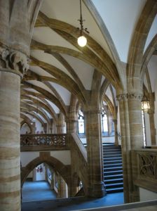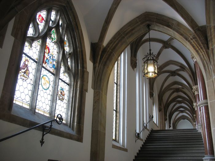 That nameless tourist was right about this. The stone arches, and very gothic styling made it feel like I was inside a foreign castle of some kind. While in the war Munich was bombed, yet apparently the damage to the Rathaus was minimal (it housed the US Military Headquarters after WWII). I do believe some of it must have been reconstructed, for many of the windows have a newer date on them than the date of construction of the building.