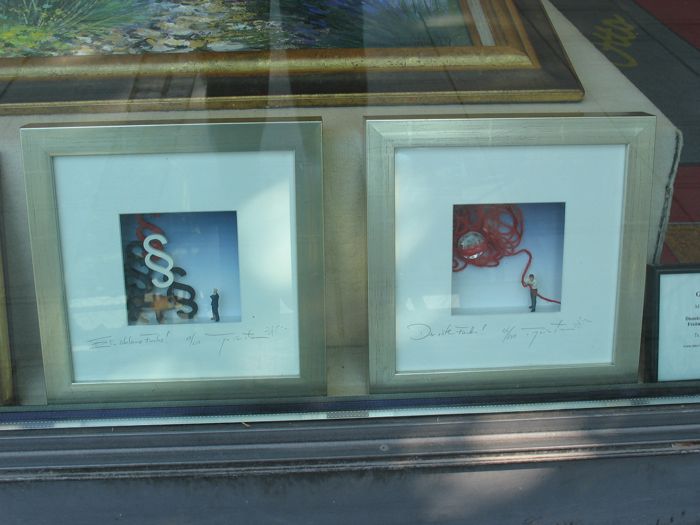 I like seeing the unusual, and in this case, two little shadow box pictures in a window bordering a small park named Marienhof Park. Just like we are so “American,” they feel so “European,” especially in their graphic arts.
