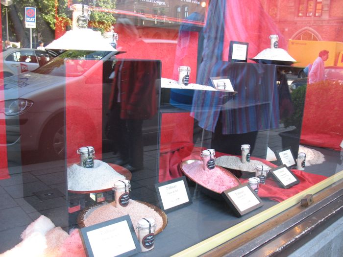 Well, maybe I was influenced by this window showing piles of different flavors of salts. Sorry about the glare on the windows.