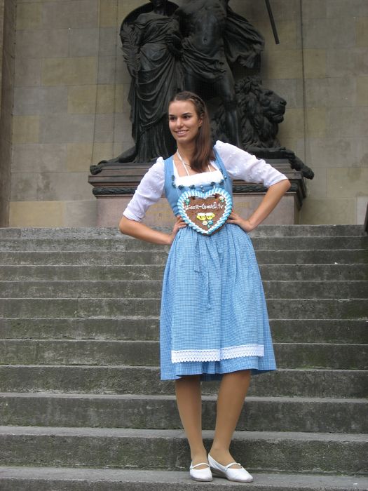 We walk down from the UBahn stop, past two models posing for a televison ad for Oktoberfest. They’re both wearing the traditional cookie, but with the web address of the TV station.
