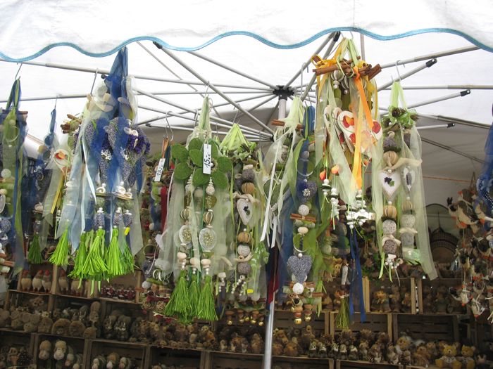 I’m always tempted by a large pretzel–these are nearly 12″ across. I saw people carrying their steins of beer, with these bretzels looped over their arms. But we’re headed for dinner after this, and I have to say no. Regretfully.