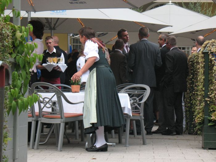 At the little restaurant aside the tower, there’s a private party. . . with a dirndl-clad waitress. I tell you they’re all over the place. I don’t know if it’s just because we’re very nearly at Oktoberfest time, or if this is just something the waitresses wear normally.