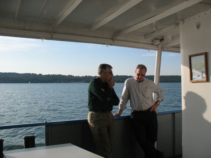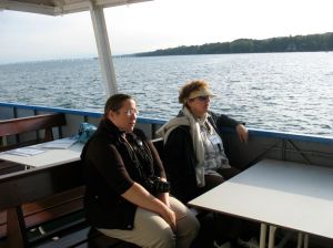 Look closely at this decorated May Pole, and instead of townspeople, merchants and animals, you see doctors, nurses and hospital beds. This is in the courtyard of the Klinikum, where we all met for our outing to Starnberger See, a lake near Munich. We bunched up into groups of 6, received a Metro ticket from Patricia and Isabel (the conference’s chief Go-To Organizers) and were off en masse to the S-bahn, via the U-bahn (the train systems) to the Starberger See, about 45 minutes or so outside of Munich. This was the place where lots of early nobles built their summer homes, and now, lots of noble scientists were going to go on a lake cruise for a few hours.