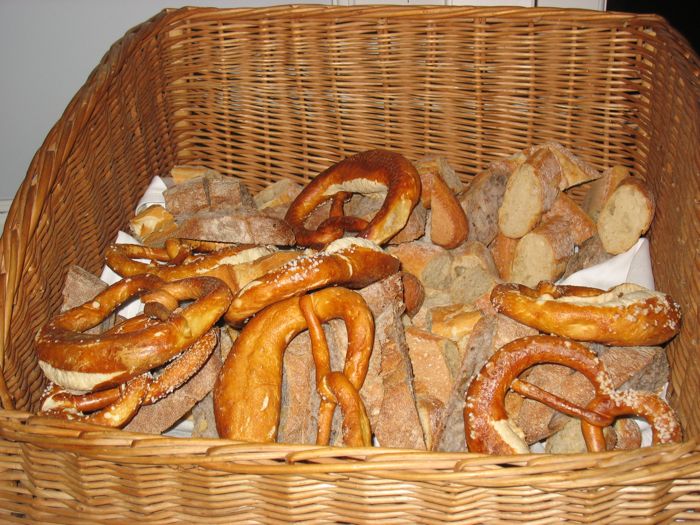 We had these giant pretzels–I think they call them bretzels–and chunks of brown bread for our bread plate. I LOVE those pretzels and had them as much as possible while in Munich.