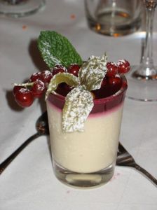 There was this–a Bavarian Cream with red currant jelly and red currant garnish. I’ve never tasted anything so creamy and amazing–perhaps it’s the German version of a Creme Brule, but more amazing. (Did I already say amazing?) The serving size and the serving spoon were both miniaturized, for good reason, because there was more.