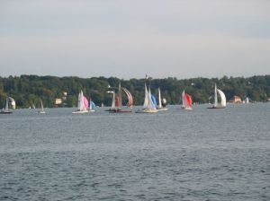 As we approached Starnberg and the end of our 3-hour cruise, the sailboats unfurled their spinnaker sails, making for a colorful display.