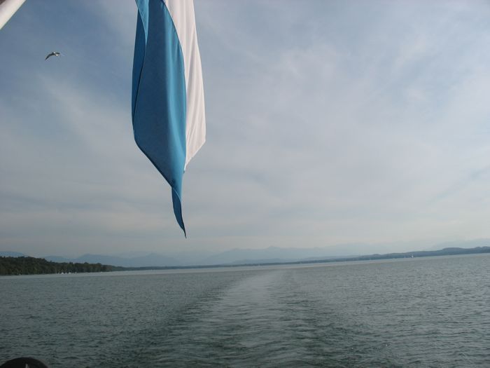 At the southern tip of the 13-mile long lake is the town of Seeshaupt, complete with teenagers who like to moon tourist cruise boats (click to enlarge). No, I didn’t realize this was what they were doing until later that night when I loaded up the photos into Dave’s computer and burst out laughing. I apparently have some relatives who are fond of mooning others–I wonder if they’ve also been captured on film by unsuspecting tourists.