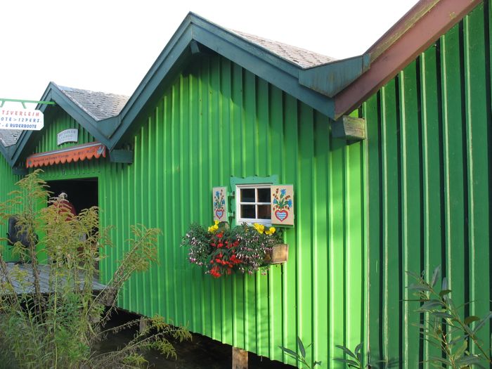 We arrived a bit early, so we walked up and down the waterfront. I liked the boathouses, in their shabby, painted finery.