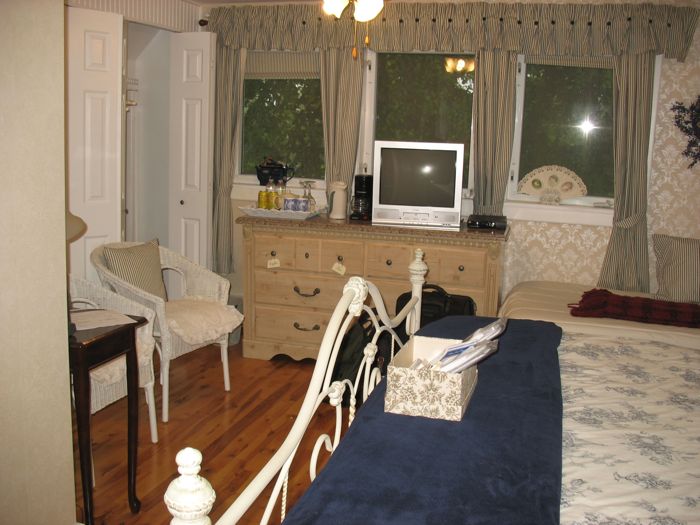 Dave figured out later that we were the only paying guests that they had booked that week. It was called the Romany Rest, and the innkeepers were British, but having grown tired of the rat race in Britain, they immigrated to Canada to run a bed and breakfast (sound familiar?). They also wanted more property, and had already purchased 25 acres on the west side of the island, but they couldn’t sell this place in order to head over there (we did notice the real estate sign as we drove in–there were a LOT of real estate signs everywhere around here).