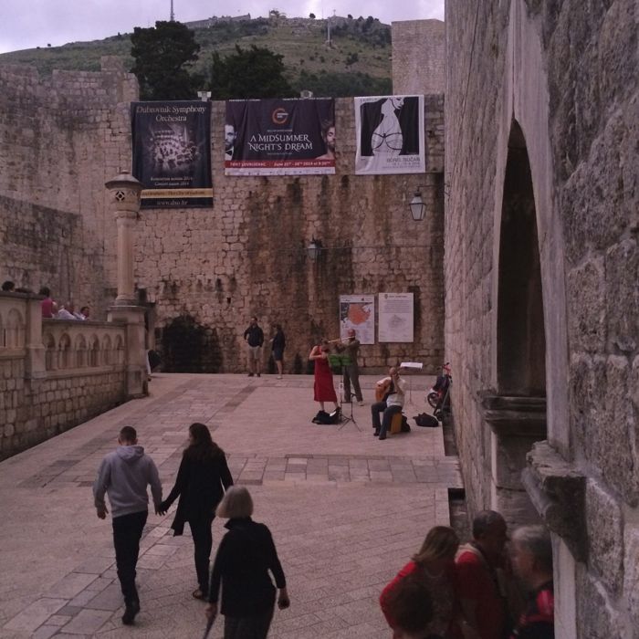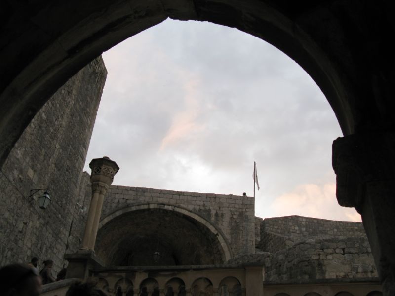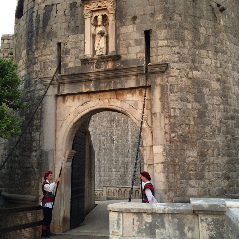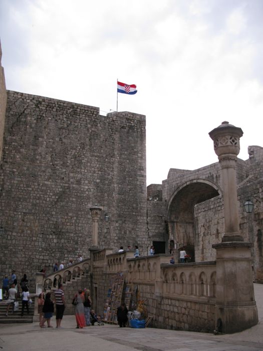 The bus dropped us just outside the Pile Gate, an entrance to the west. Clutching our printed directions, we were to walk the main street, the Stradun, turn right at some other street, walk past the named pizza place, find the green door (or was it blue?) and ring the bell.