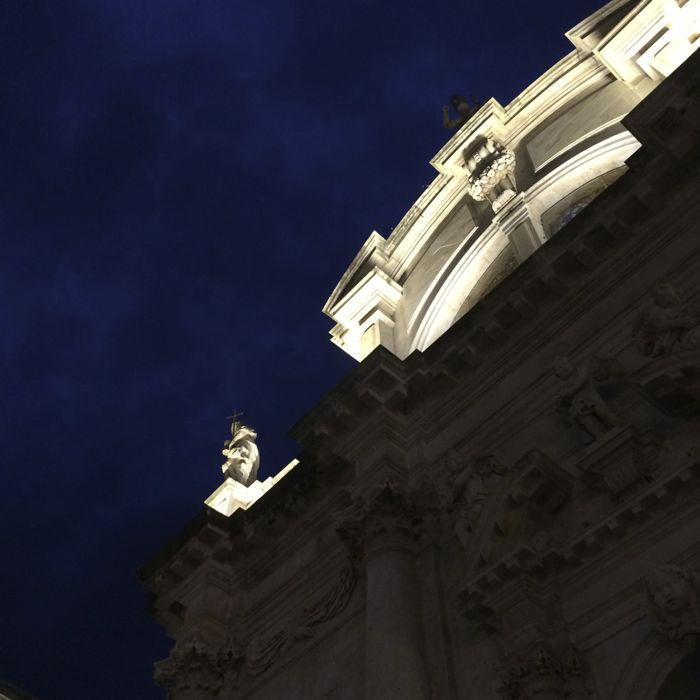 The tourist board has hired two young teen boys to act as sentries for several hours every night. Young women liked to pose with them, and when no one was looking, they’d slump slightly on the top rail of the fencing. A small statue of St. Blaise watches over them. St. Blaise, according to legend, saved the town with his warnings that the Venetian Navy was set to attack the town.