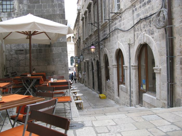 Behind us was the “restaurant” street, Prijecko Street, and it beckoned because Dave likes to explore several options before settling in to one place. We call it the “restaurant street,” because we tended to give nicknames to locations, as we found the Croatian unpronounceable even though we tried to wrap our tongues around the words.