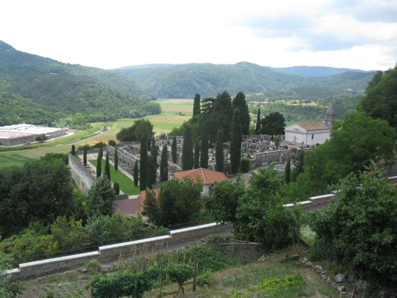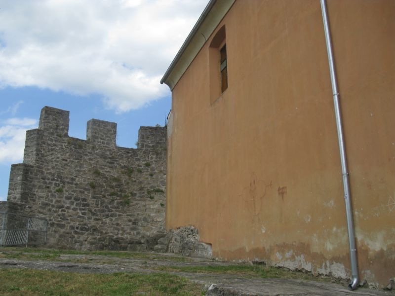 We walked up to the top of the town, the church abutting the old crenelated city wall.  Buzet has credentials back to the 16th century, but I think the graffiti is newer.