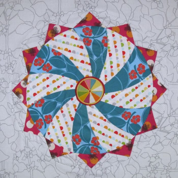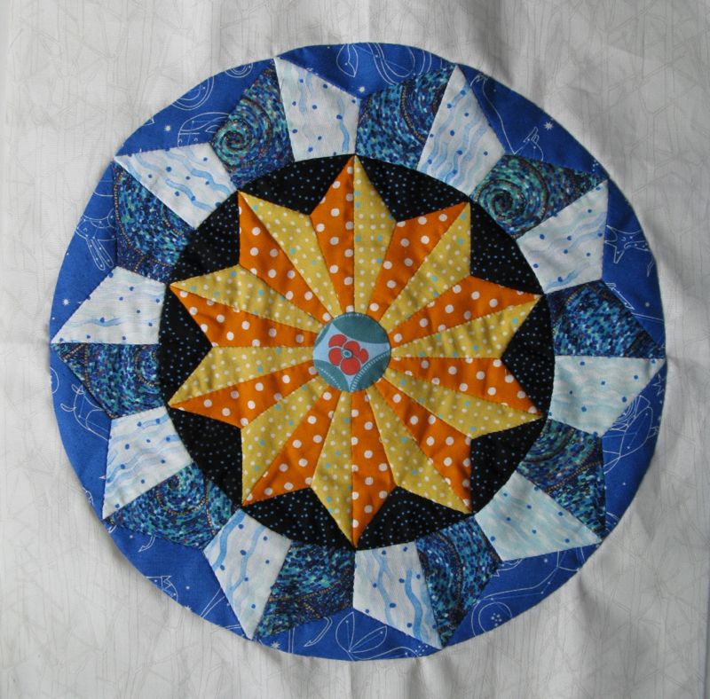 I’d downloaded a picture of one of my circle blocks from my quilty blog onto my mobile phone, hoping to talk the church-keeper into letting me take photos for my “art project” of quilting. That was typical behavior for Dave and I–we’d try to think up whatever we would need, web-wise, and download it onto our phones while on the free wi-fi of our hotel rooms, as we kept our roaming signal turned off while we traveled. I showed it to him, and he smiled, pointed to me and said “your art.” He gave me the okay for taking photographs, and soon Earl, Anna Clare and Dave joined in. I think our time there was well-documented. I’ve interspersed photos of the quilt circles I made when returning home, showing the inspiration and the finished project.