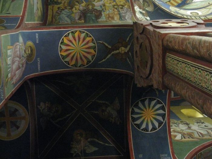 Way to make good use of your quilting talent! I love Orthodox churches–the spectacular colors, thousands of figures, obvious adoration of God and his saints. These are fantastic photos. We missed this church–it was closed during our time there. Thanks for the virtual visit!