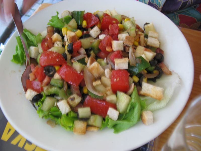 After that exciting story, it was time for dinner, and we used Rick Steve’s book to find Nokturn, and were glad we ate here. Dave and I shared the above salad, while Anna Clare and Earl shared the one below.