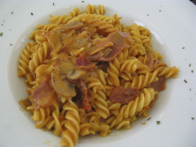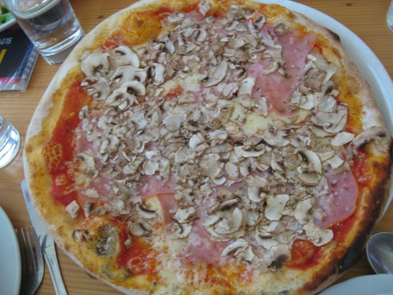 I ordered this pasta, which was really great (I don’t even remember what we had for lunch–I think it was whatever leftovers we found in the car) and I was hungry. I shared it with whoever wanted a bite, but they were more interested in their large pizza: