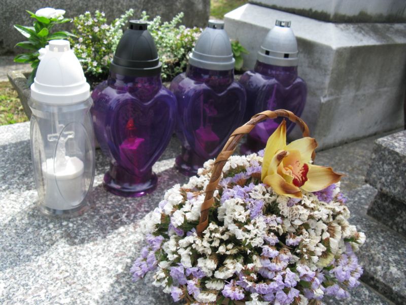 Notice the radio transmitter? Through a series of clues, we were thinking that it would turn on the “candles” at this boy’s feet, as each of them appeared to be electronic. If this is the case, we in America are woefully behind in our appropriate graveside accouterments.