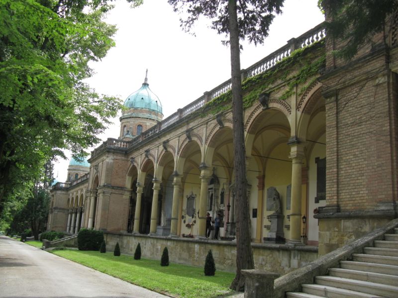 This is looking towards the backside of that front dome, at a large area for gathering the mourners and/or visitors. While we were there, a funeral gathered, the bells clanging for ages it seemed, and we saw from a distance the casket proceeding to its resting place, followed by a handful of mourners in black. The bells tolled for a long time.