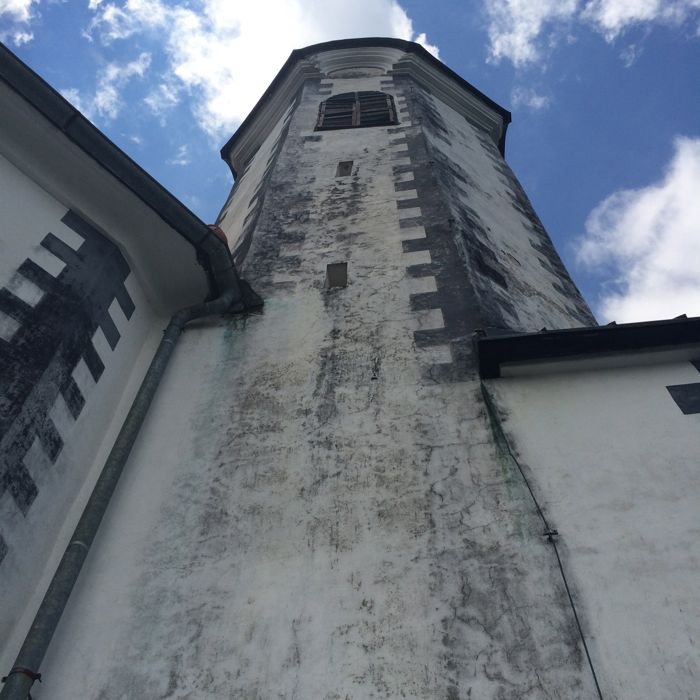 We both noticed the off-center window, which looks much older than the rest of the church.