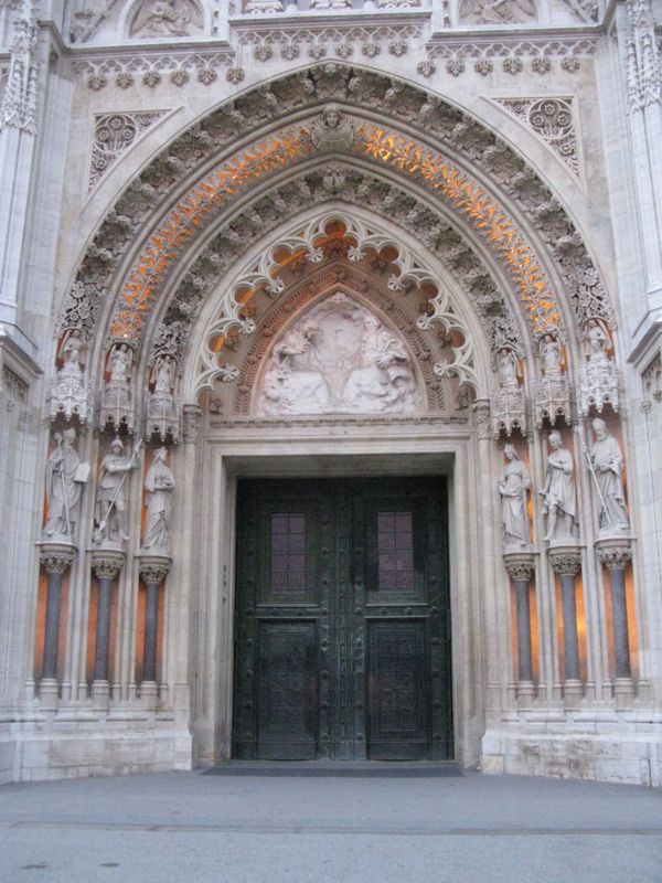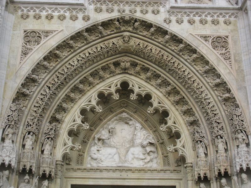 It is beautiful decorated on the front. We sit on the bench off to the left, waiting for Earl and Anna Clare, but able to view humanity. We were going to go in an tour the cathedral, but the bells tolled for mass, so we decided not to go.