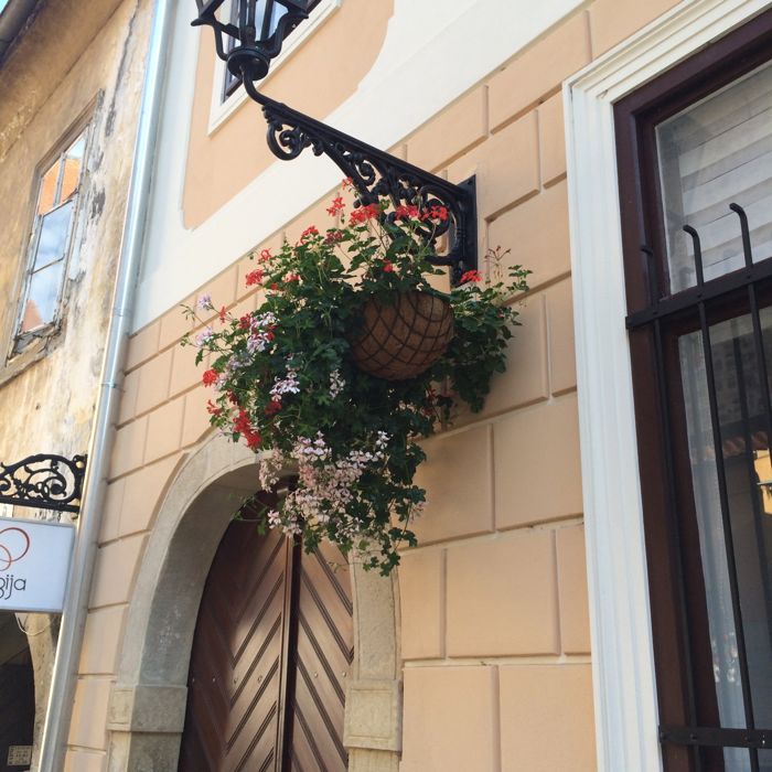 Zagreb_pm8c_platzsignThis building with all the flags is the Ban’s Palace, offices for the prime minister.  Across the square (where I found that elegant gold curlicue door handle) is the Parliament building.