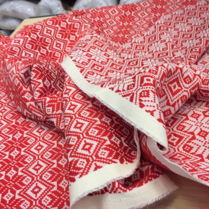 Zagreb_fabricWe I did buy some fabric.  Well, I went into the store and thought it was a fabric shop, but it was a Home Dec store, and the fabric we’d seen in the window was actually tablecloth fabric.  I bought two lengths off of two different bolts of cloth, too tired to figure it all out, so of course, when we got home, they were too small.  So I turn them at an angle when I put them on the table.