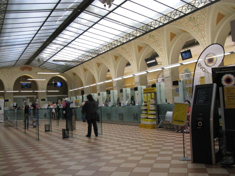 Zagreb_pm1b_post officeWhat a great looking post office!  I also purchased some fancier stamps for decorative uses at home.  To get into this, you enter in a main door.  On the right is a market, which we also walked through, and on the left was this glorious post office.