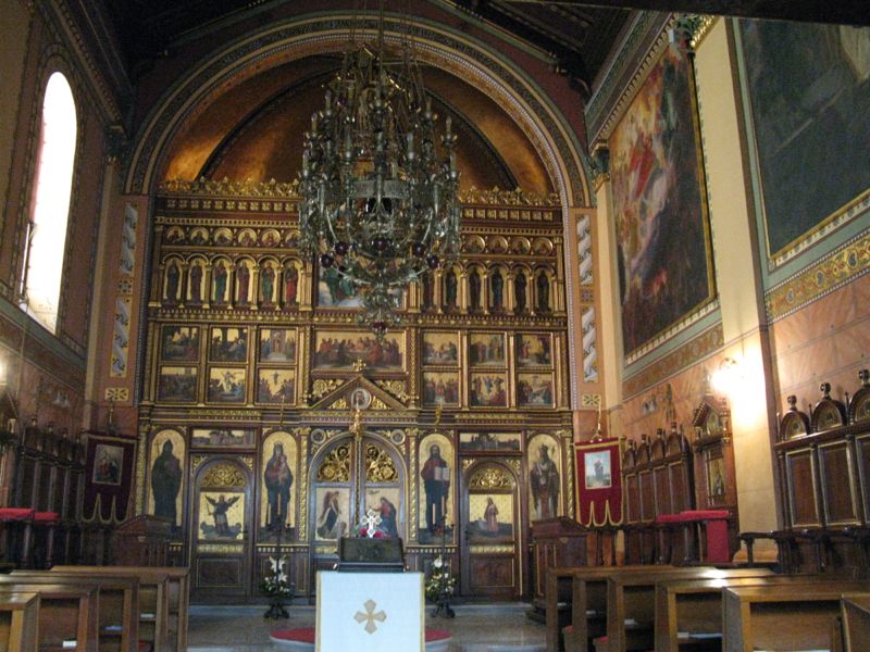 Zagreb_pm6_interiorGreekchurchWhen we come out, all the church bells are ringing for evening mass.  We realize we can now see inside the three churches if we hurry, so we hit the Greek church first.  We stand quietly at the back, and take this photo surreptitiously.