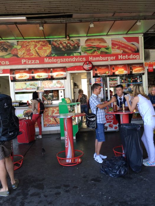 Budapest_train stationTrain Station eats.  We found out we had landed at the less nicer of the two train stations.  No kidding.  Now comes the game to change money.
