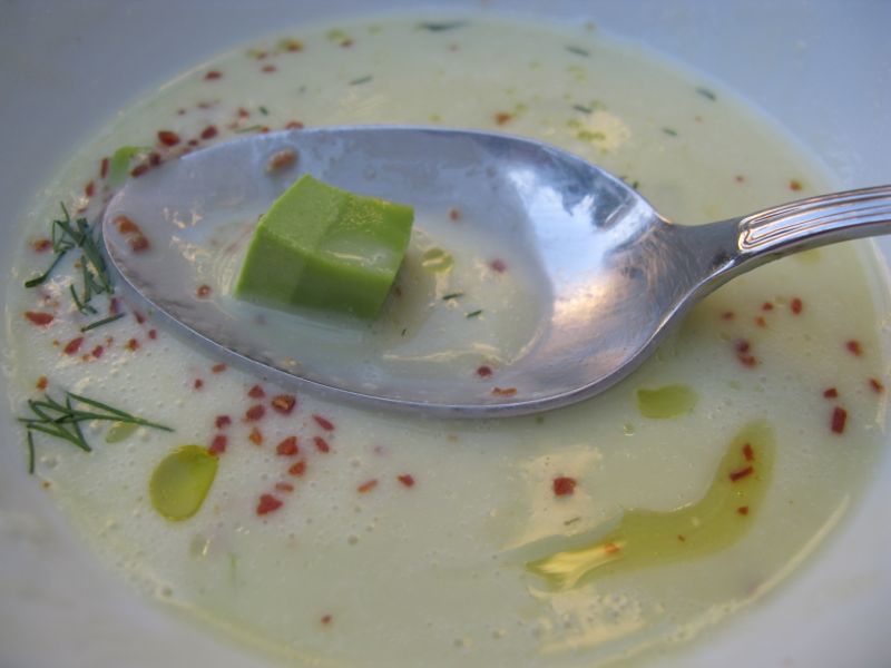 Chilled pumpkin cream soup with dill jelly (detail, below)Matryoshka Dinner5aMatryoshka Dinner6
