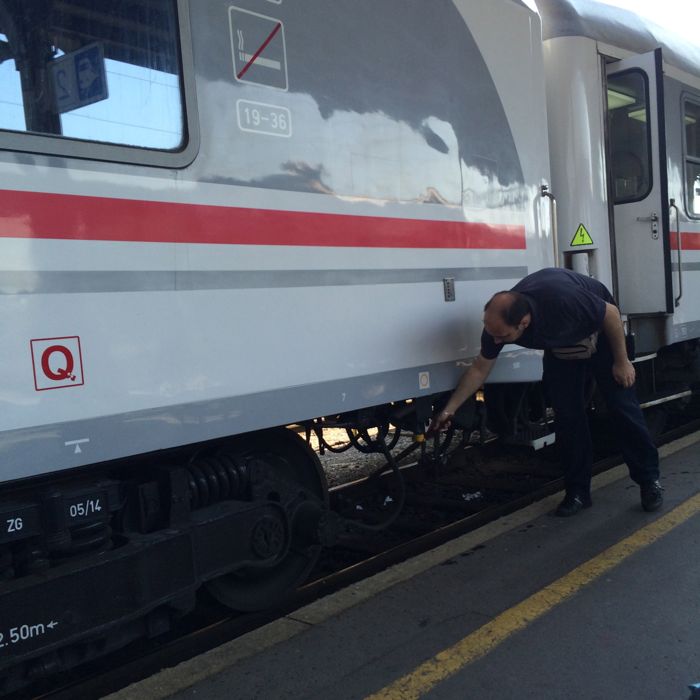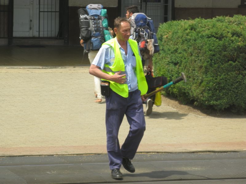 Zagreb_last pictures6_banging tiresThis guy came around and banged the wheels before we were boarding–a metallic hammering sound.  I have no idea why. Scenes from the trip: