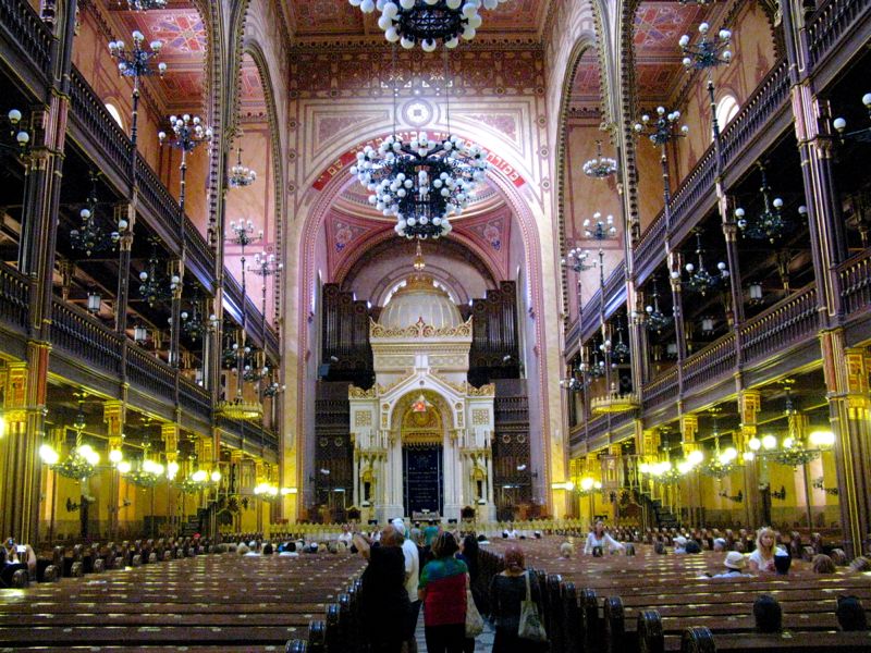 Budapest_15 open subwayI was fascinated that I could look all the way down the train, with no doors in between cars.Budapest_16 SynagogueBudapest_16a SynagogueAlso known as the Dohany Street Synagogue, this Jewish Synagogue is the biggest in Europe and the second biggest after the synagogue in New York City.  It was loosely patterned after the descriptions of Solomon’s Temple in Jerusalem, which explains the two tall towers.  Many think this synagogue feels very Catholic-like.