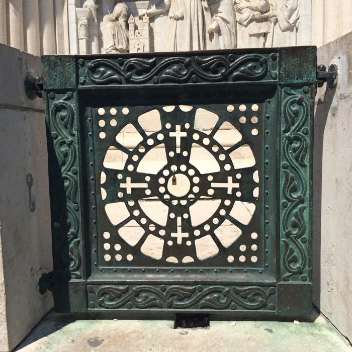 Budapest_6 Buda HillWe walk around the area of the church, noticing this beautiful gate with a hideous Lock of Love attached (maybe it’s a new form of graffiti?).