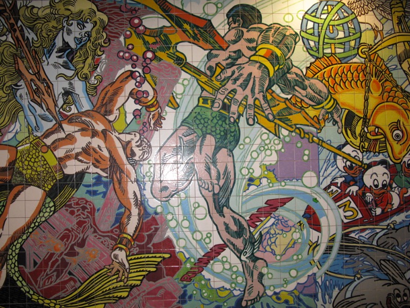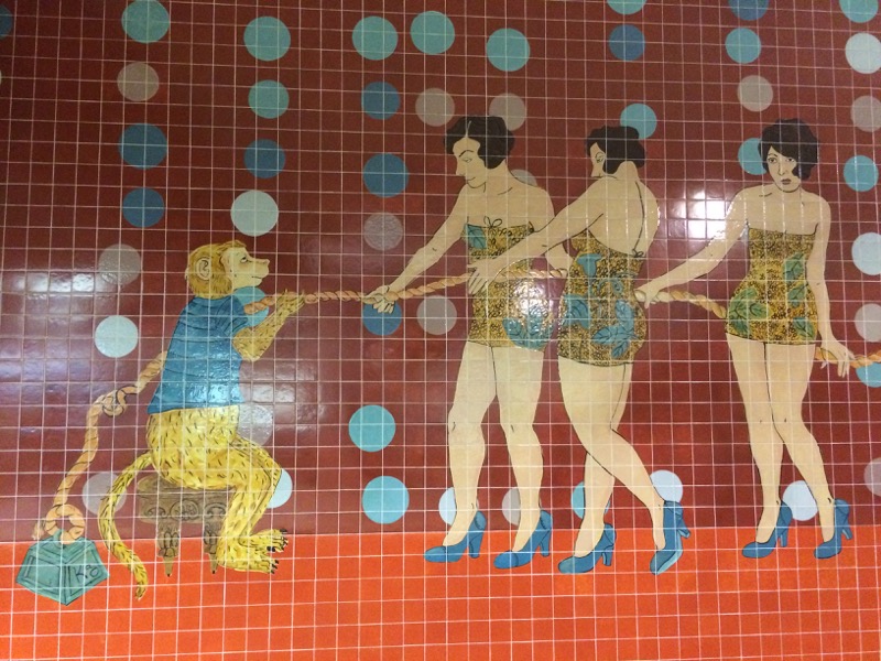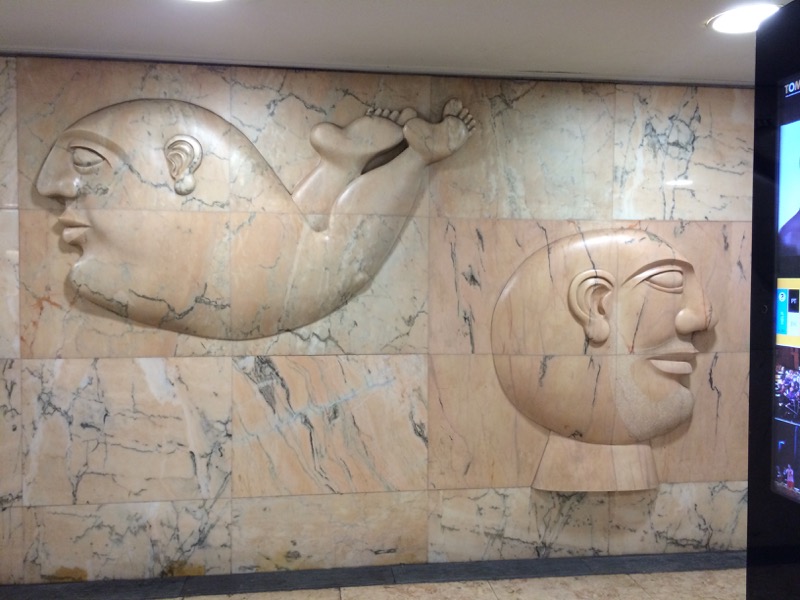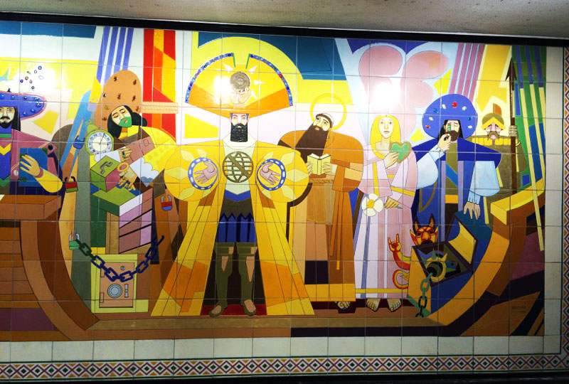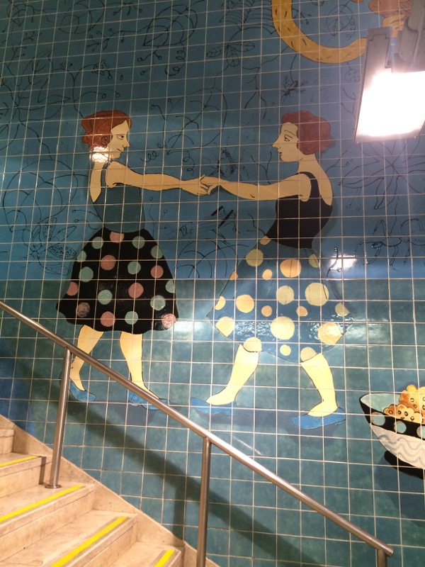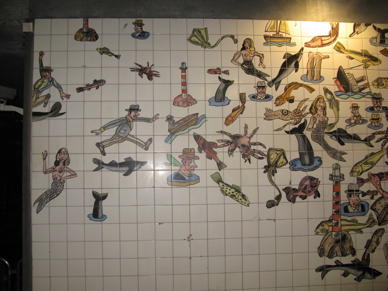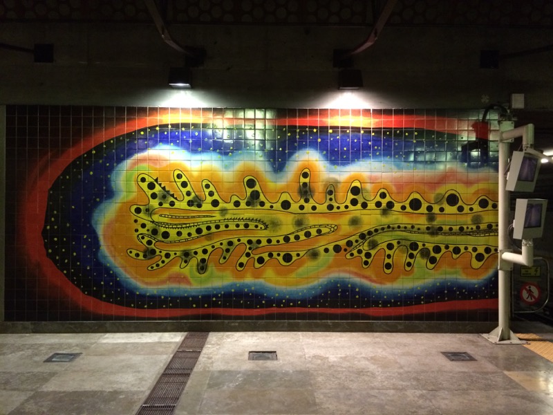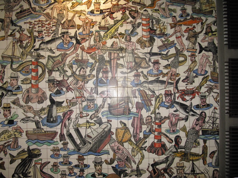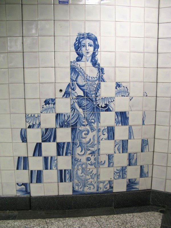 Martim Moniz–a station near a plaza dedicated to martyred Christian soldier. Apparently some of this is plastic on top of tiles, but it felt like tiles to us.